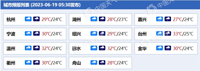 后天,浙北地區(qū)多云到陰,午后局部有陣雨或雷雨;浙中南地區(qū)陰有陣雨或雷雨。 以上有雷雨地區(qū)局部可伴有短時(shí)暴雨和個(gè)別8-10級雷雨大風(fēng)。