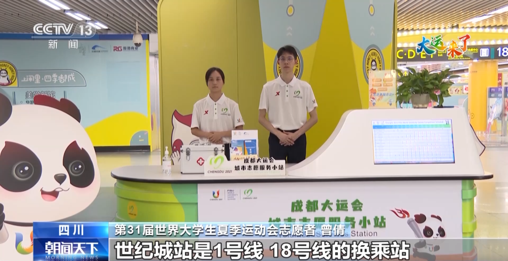 第31屆世界大學(xué)生夏季運(yùn)動會志愿者 曾倩:世紀(jì)城站是1號線、18號線的換乘站,平時的客流量比較大,為了讓大家更好地了解大運(yùn)會、走進(jìn)大運(yùn)會。我們提供了一些大運(yùn)會的咨詢服務(wù)。成都是一座著名的旅游城市,為了讓大家更好地坐地鐵、玩成都、游成都,我們提供了乘車指引――成都地鐵美景地圖。