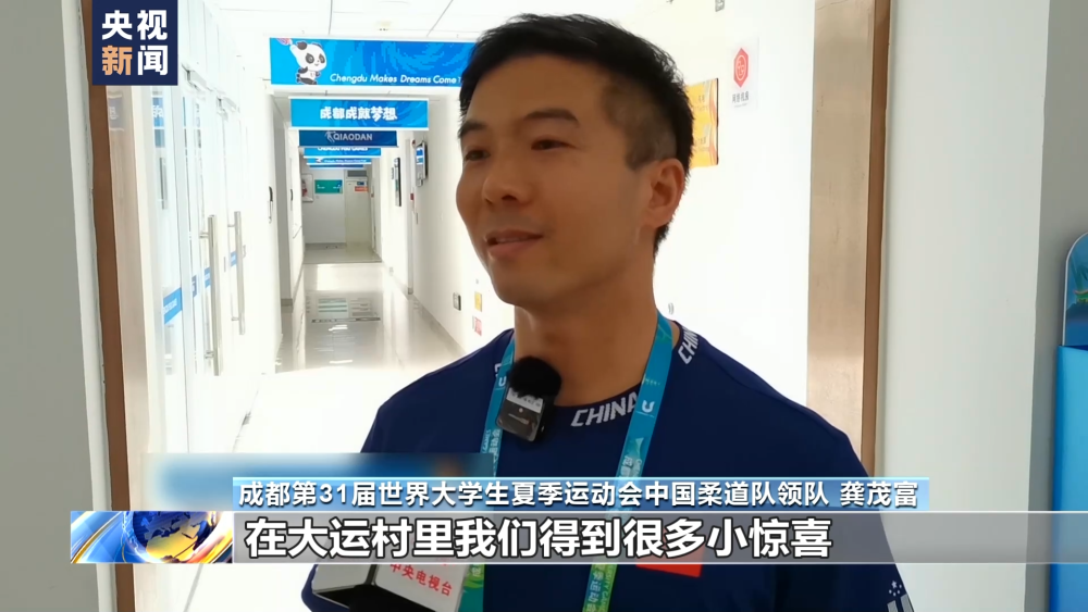 成都第31屆世界大學(xué)生夏季運(yùn)動(dòng)會(huì)中國(guó)柔道隊(duì)領(lǐng)隊(duì) 龔茂富:在大運(yùn)村里,我們得到很多小驚喜,我們的隊(duì)員都十分開心。