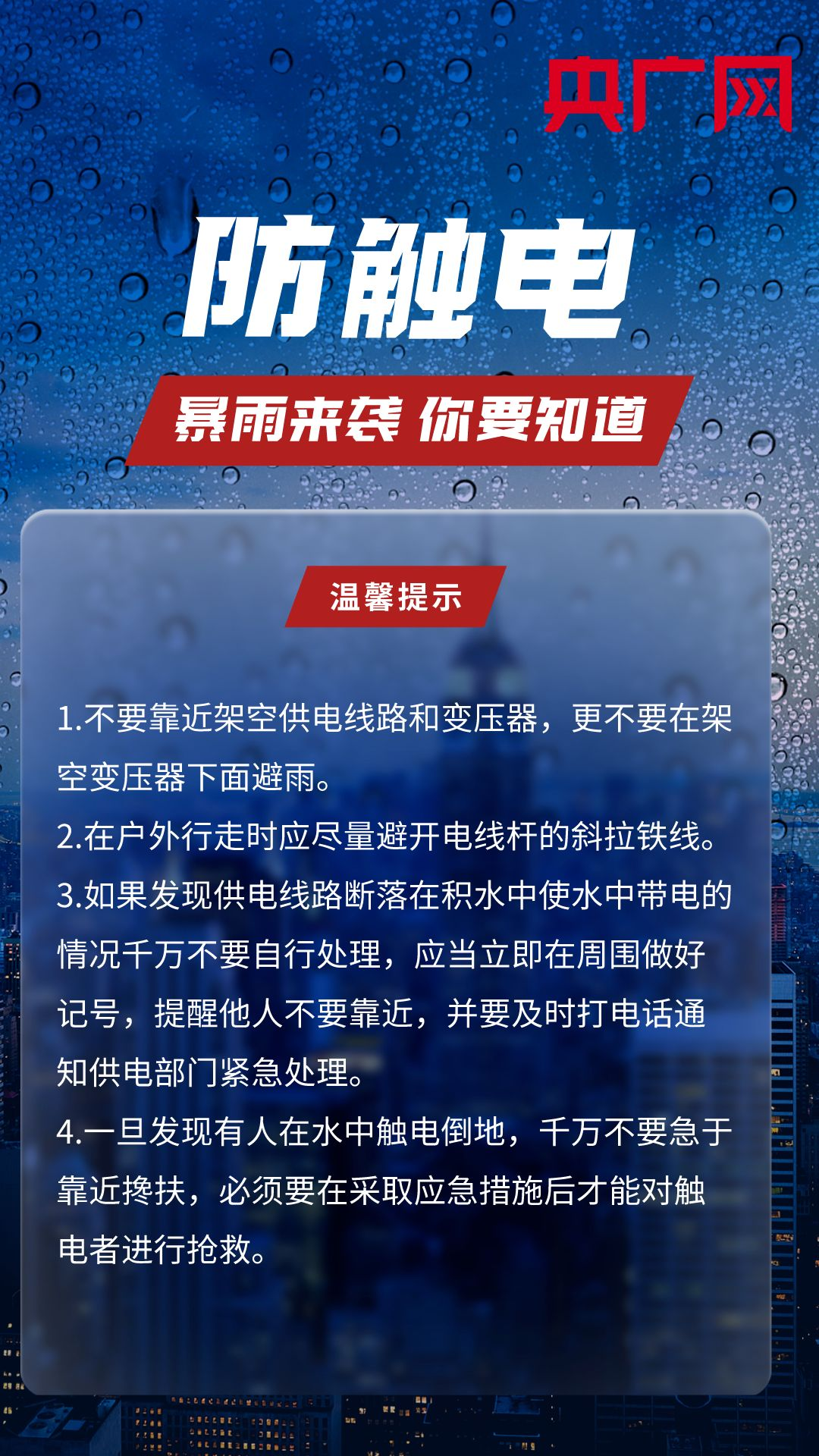 央廣網北京8月1日消息 近日,多地連降暴雨,雨情牽動著人們的心。暴雨來臨前,我們能提前做哪些準備工作?暴雨天不得不外出時,又該如何做好防范?戳圖了解↓↓