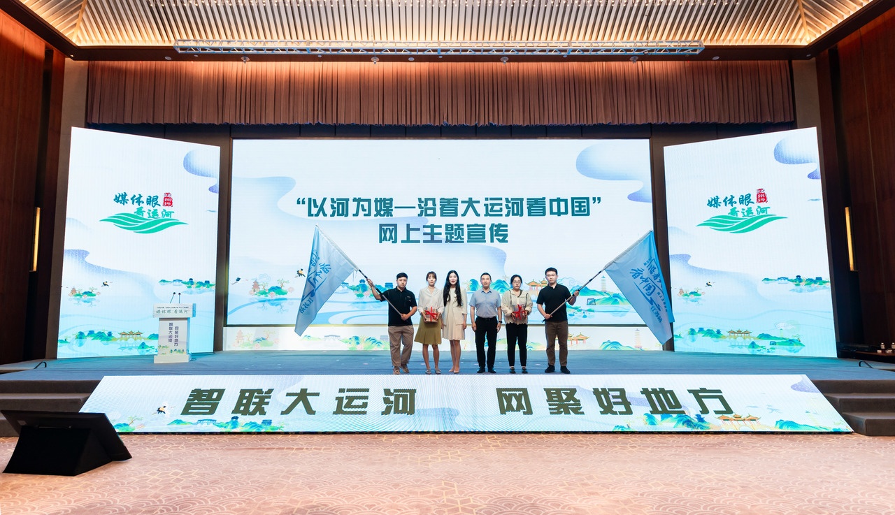 “以河為媒—沿著大運河看中國”網(wǎng)上主題宣傳授旗、贈書現(xiàn)場