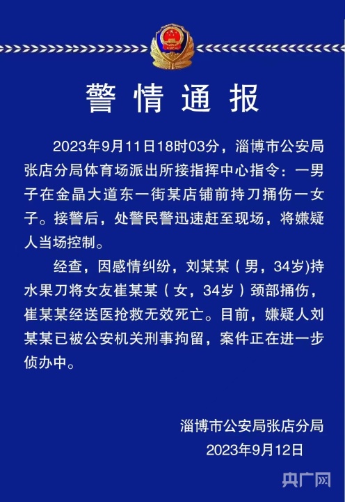 淄博警方通報(bào):男子當(dāng)街行兇致女友死亡