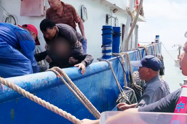 受傷漁民上岸救治(央廣網發(fā) 通訊員供圖)