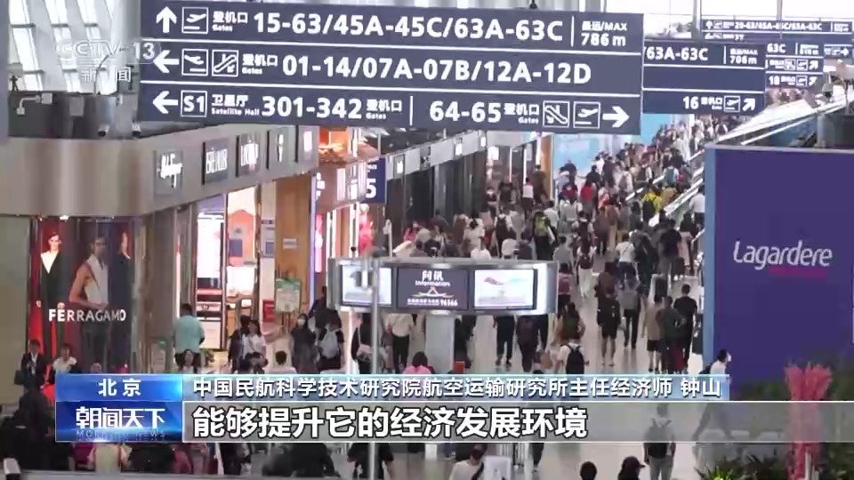 中國民航科學技術(shù)研究院航空運輸研究所主任經(jīng)濟師 鐘山:通過我們這種“干支通、全網(wǎng)聯(lián)”以及通程航班的模式,能夠讓我們?nèi)?、四線城市的旅客,融到整個國家的經(jīng)濟社會建設中,能夠提升它的經(jīng)濟發(fā)展環(huán)境。特別是從統(tǒng)一大市場的開放角度來看,這個是最終能夠促進我們國內(nèi)市場的銜接。