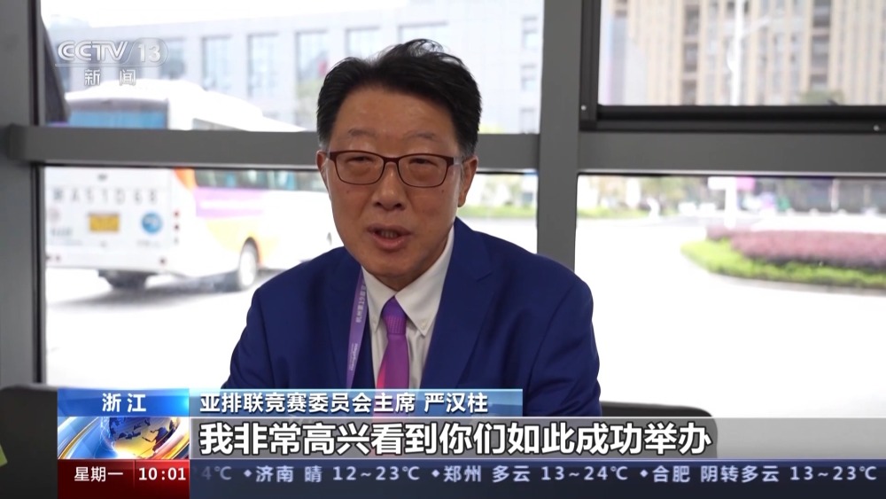 亞排聯(lián)競賽委員會主席嚴(yán)漢柱:我非常高興看到你們?nèi)绱顺晒εe辦亞運(yùn)會的男排和女排比賽,場館內(nèi)外工作人員,他們在自己崗位上盡職盡責(zé),沒有出現(xiàn)任何問題,有如此優(yōu)秀的場館,我想在未來見證這個場館舉辦更多的排球國際賽事,我還會再來的。