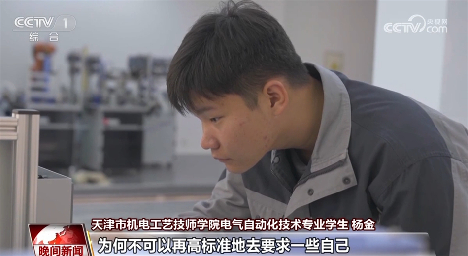天津市機(jī)電工藝技師學(xué)院電氣自動化技術(shù)專業(yè)學(xué)生 楊金:讓每一顆螺絲、每一個部件都能發(fā)揮出它最大的作用,這就是我的需要和目標(biāo)了。(未來希望)自主去研發(fā)需要使用的機(jī)器,可以去創(chuàng)造(更多)屬于咱們(國人)自己的(電氣化)產(chǎn)品。