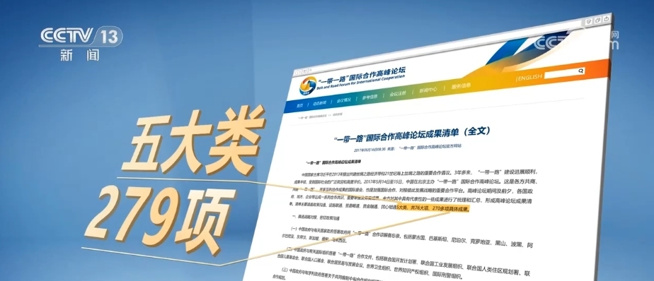 第一屆“一帶一路”國際合作高峰論壇誕生的首張成果清單,涵蓋了五大類的279項具體成果。政策溝通、設施聯(lián)通、貿(mào)易暢通、資金融通、民心相通成為各國合作的重點。