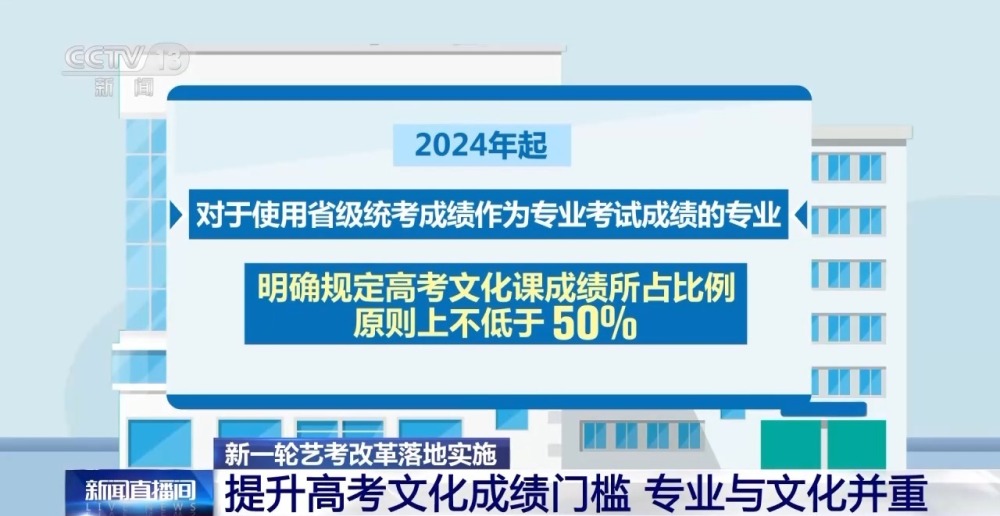 此外,2024年起,對(duì)于使用省級(jí)統(tǒng)考成績(jī)作為專業(yè)考試成績(jī)的專業(yè),明確規(guī)定高考文化課成績(jī)所占比例原則上不低于50%。同時(shí),鼓勵(lì)校考高校結(jié)合專業(yè)培養(yǎng)要求,進(jìn)一步提高考生高考文化課成績(jī)錄取要求。