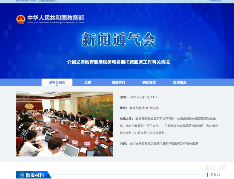 教育部此前舉辦的介紹義務(wù)教育課后服務(wù)和暑期托管服務(wù)工作有關(guān)情況通氣會(huì)(央廣網(wǎng)發(fā) 圖片來自教育部網(wǎng)站)