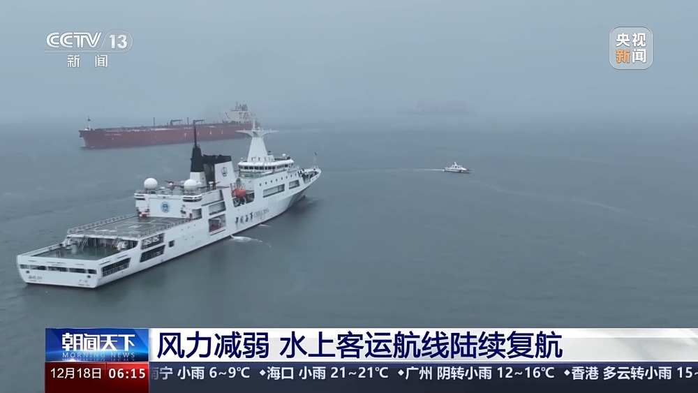 從12月17日12時起,根據(jù)海面風(fēng)力情況,廣東珠海市內(nèi)往返海島航線陸續(xù)復(fù)航,預(yù)計18日全部復(fù)航。江門川山群島海上客運航線于12月17日下午陸續(xù)復(fù)航,汽車渡運預(yù)計于12月18日復(fù)航。