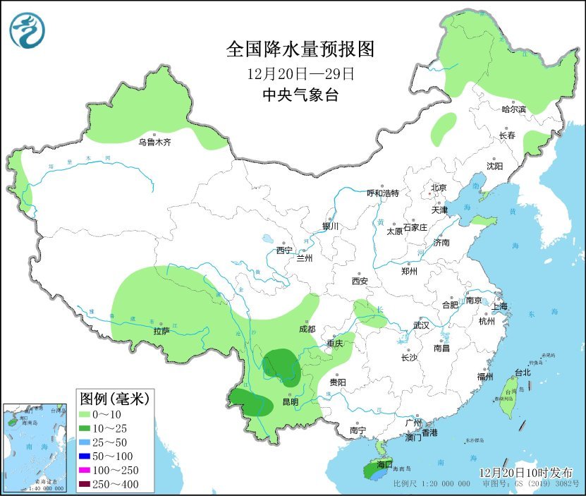 未來10天(12月20-29日),全國大部地區(qū)降水稀少,新疆北部、東北地區(qū)北部及西南地區(qū)東部等地累計降水量有2~15毫米。