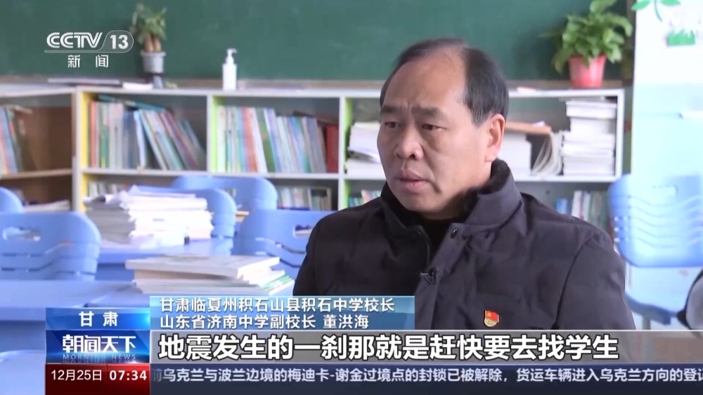 甘肅臨夏州積石山縣積石中學(xué)校長(zhǎng)、山東省濟(jì)南中學(xué)副校長(zhǎng) 董洪海:地震當(dāng)天的凌晨,就已經(jīng)有臨夏市的百姓到學(xué)校里邊送食物,有大量的救援的車輛、人員進(jìn)入,也感到了整個(gè)社會(huì)支撐的力量。我不是一個(gè)人在戰(zhàn)斗,是一個(gè)很大的團(tuán)隊(duì)。