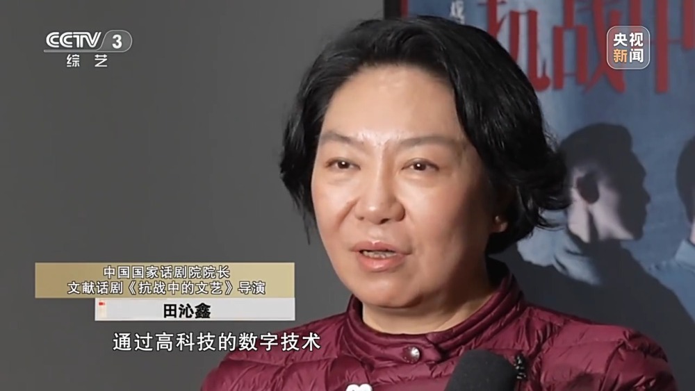 中國(guó)國(guó)家話劇院院長(zhǎng) 文獻(xiàn)話劇《抗戰(zhàn)中的文藝》導(dǎo)演 田沁鑫:在舞臺(tái)方面,也是打破了時(shí)空的界限,通過高科技的數(shù)字技術(shù),影視化的多機(jī)位多角度的拍攝手法,將裝置影像藝術(shù)和戲劇表演藝術(shù)相融合,以戲劇電影的方式講好中國(guó)故事。