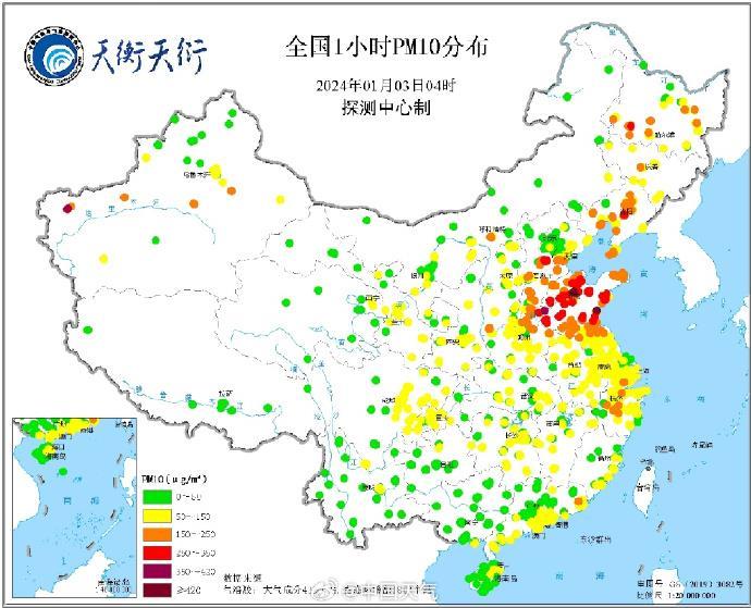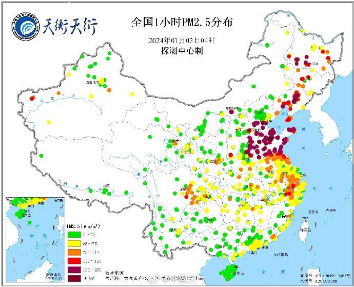 據(jù)中國(guó)氣象局氣象探測(cè)中心綜合觀測(cè)產(chǎn)品系統(tǒng)(天衡天衍)產(chǎn)品顯示,根據(jù)1月3日04時(shí)全國(guó)時(shí)均PM10、PM2.5分布圖,河北、山東、長(zhǎng)三角、川渝等地區(qū)PM10、PM2.5濃度較高。最大PM10出現(xiàn)在山東青島站,為285微克/立方米。最大PM2.5出現(xiàn)在山東淄博站,為272.6微克/立方米。以上地區(qū)PM10大都超過150微克/立方米;PM2.5大都超過115微克/立方米。