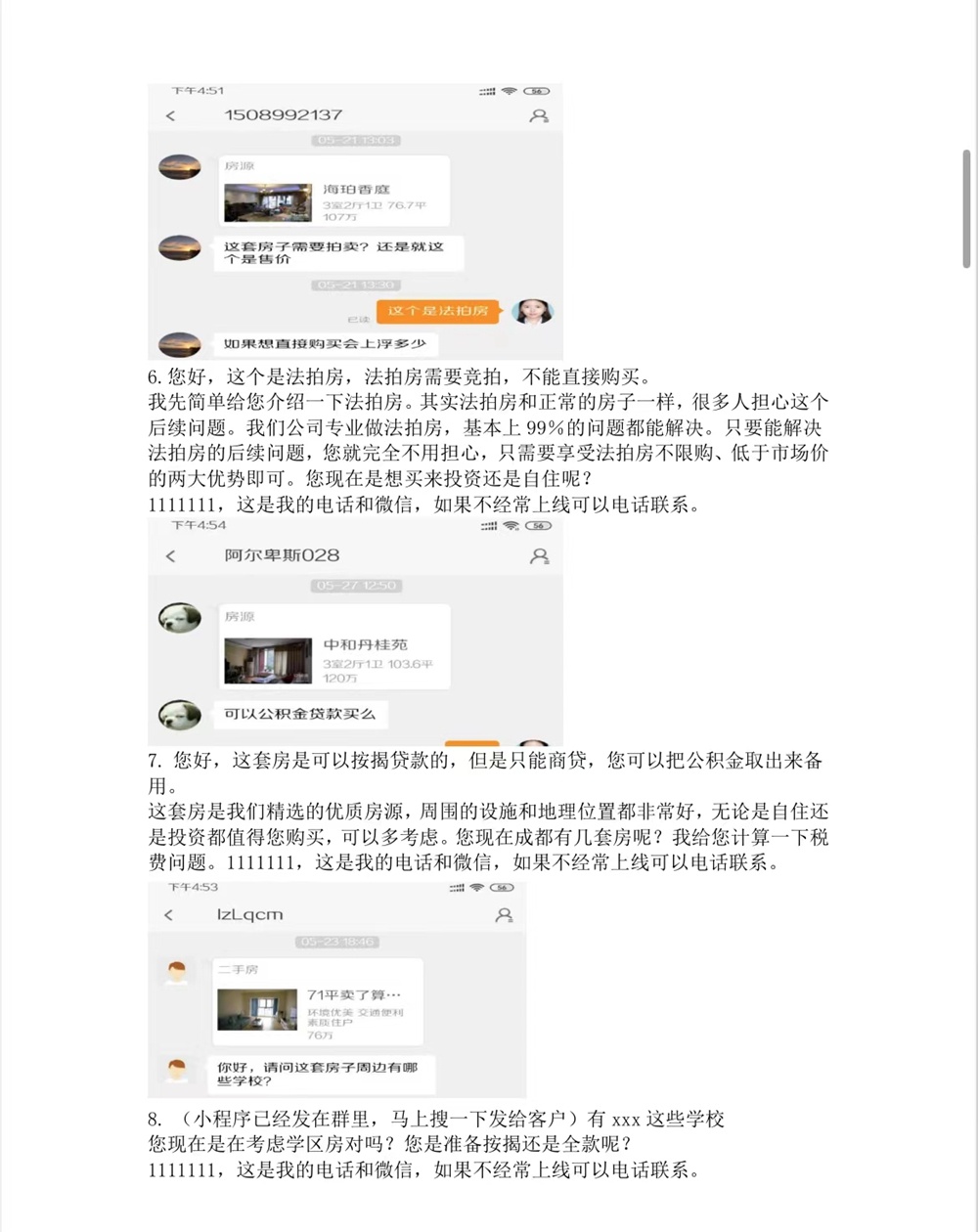 吳先生說,他所在的維權(quán)群里有30多位消費者,盡管大家是與不同中介簽訂的合同,但梳理發(fā)現(xiàn),這些“法拍房中介”前期向客戶推銷時有固定的話術(shù)?!暗谝?,就是說現(xiàn)在很多房子在拍賣;依據(jù)我們的經(jīng)驗,在這一帶,這種類型的房子二十幾萬就能拿下來了;他就告訴你,基本上這個價格不會有什么變化的,你只要跟我們簽約,我們就能幫你服務(wù)、幫你拿到?!?/p>