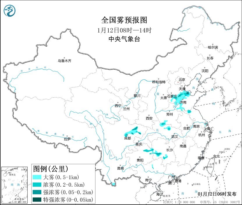 央視網(wǎng)消息:中央氣象臺1月12日06時繼續(xù)發(fā)布大霧黃色預(yù)警:預(yù)計,1月12日的早晨至上午時段,河北南部、山東北部和西部、湖北北部、四川盆地北部、湖南西部、貴州東部等地的部分地區(qū)有大霧天氣,其中山東西北部、四川盆地北部、湖北北部、湖南西部、貴州東北部等地的部分地區(qū)有能見度不足500米的濃霧,局地有能見度不足200米的強(qiáng)濃霧。