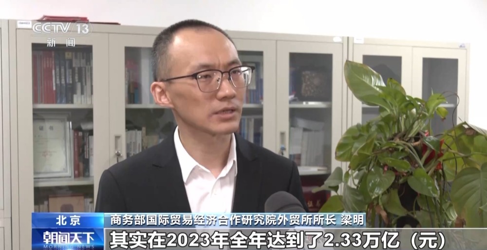 商務(wù)部國際貿(mào)易經(jīng)濟(jì)合作研究院外貿(mào)所所長(zhǎng) 梁明:(我們的)跨境電商,在2023年全年達(dá)到了2.33萬億,同比增長(zhǎng)15.6%,比去年增速是加快了5.8個(gè)百分點(diǎn)?!靶氯龢印蔽覀円彩鞘状瓮黄?萬億,增速是接近30%。