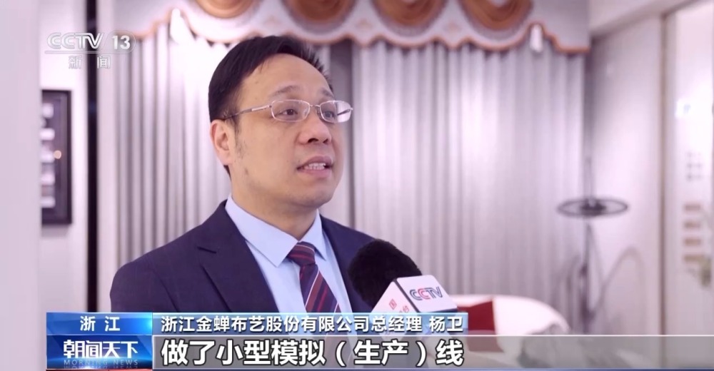 浙江金蟬布藝股份有限公司總經(jīng)理 楊衛(wèi):剛開始,父輩們會覺得投資好大,它效果怎么樣?然后我列了各種數(shù)據(jù)做了小型模擬生產(chǎn)線,把這些結(jié)果給父親看,最后父親覺得確實應該走智能化的道路,然后我們就更大規(guī)模投建整個的智能工廠。