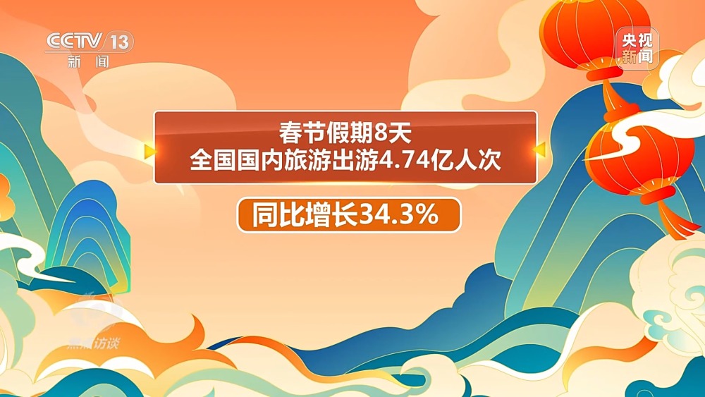 春節(jié)假期,全國上下洋溢著喜氣洋洋、紅紅火火的節(jié)日氣氛。農(nóng)歷正月初一至初八,電影總票房突破80億元,創(chuàng)中國影史春節(jié)檔票房紀錄;春節(jié)假期8天全國國內(nèi)旅游出游4.74億人次,同比增長34.3%;臘月二十三以來,全國重點商圈的客流總量同比增長超70%;春節(jié)前后,超500萬條打卡傳統(tǒng)文化的內(nèi)容在社交平臺上掀起熱潮。