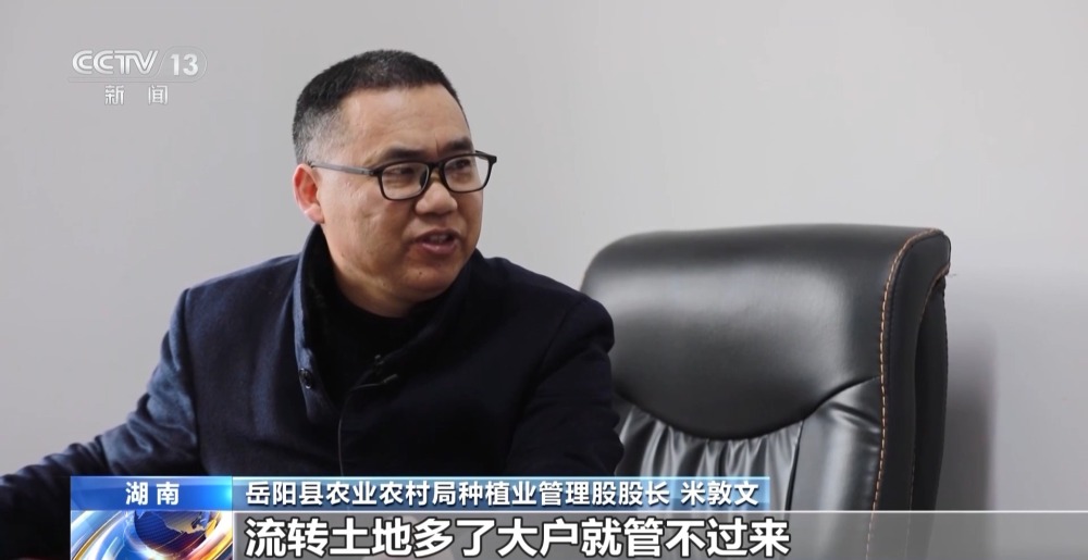 岳陽縣農(nóng)業(yè)農(nóng)村局種植業(yè)管理股股長 米敦文:流轉(zhuǎn)土地多了,大戶就管不過來,請人又保證不了畝產(chǎn),還要增加開支,大戶的心氣也跟著往下掉。所以還是不能搞貪大求多那個老一套,還是要鼓勵大戶在耕種上精耕細(xì)作,提高產(chǎn)量,增加效益。