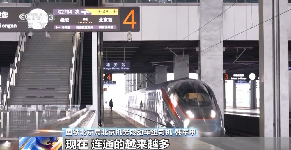 國鐵北京局北京機(jī)務(wù)段動(dòng)車組司機(jī) 韓軍甲:剛開車到雄安的時(shí)候,這里只是一座車站?,F(xiàn)在,連通的越來越多,像去年年底天津方向過來的津興高鐵,和現(xiàn)在正在建設(shè)當(dāng)中的南向的雄商、西向的雄忻高鐵,這里將是一座新的樞紐,想一想非常開心,我想多開幾年高鐵。