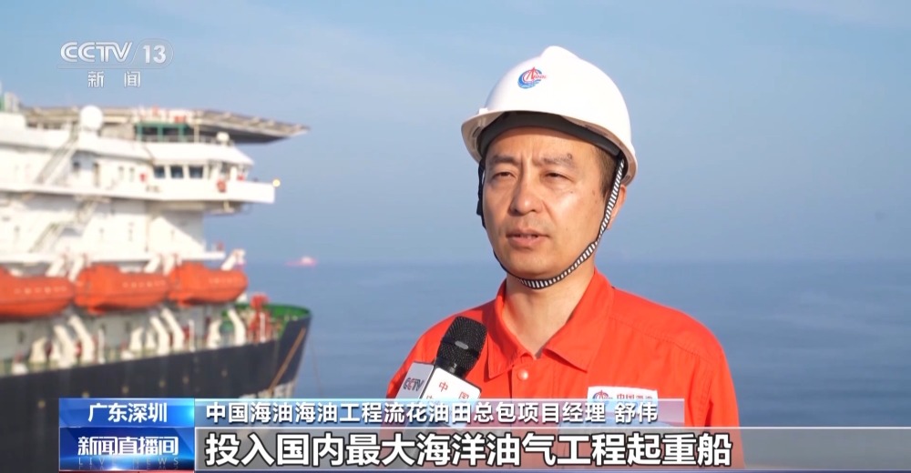 總臺央視記者 古峻嶺:在“?;枴焙I习惭b作業(yè)現(xiàn)場,經(jīng)過16個小時的連續(xù)施工作業(yè),“海基二號”已經(jīng)由昨天滑移下水時的橫向漂浮狀態(tài),變?yōu)橹绷顟B(tài),它高達338米的龐大身軀,已經(jīng)穩(wěn)穩(wěn)站立在了324米深的海床之上,僅有10余米的部分露出水面,接下來工作人員將以它為基礎,建設安裝一座萬噸級海上鉆井平臺。未來它將在臺風和惡劣海況的輪番考驗下,在這里穩(wěn)穩(wěn)矗立30年,源源不斷地將深海油氣輸送到千家萬戶,為保障國家能源安全提供堅強支撐。