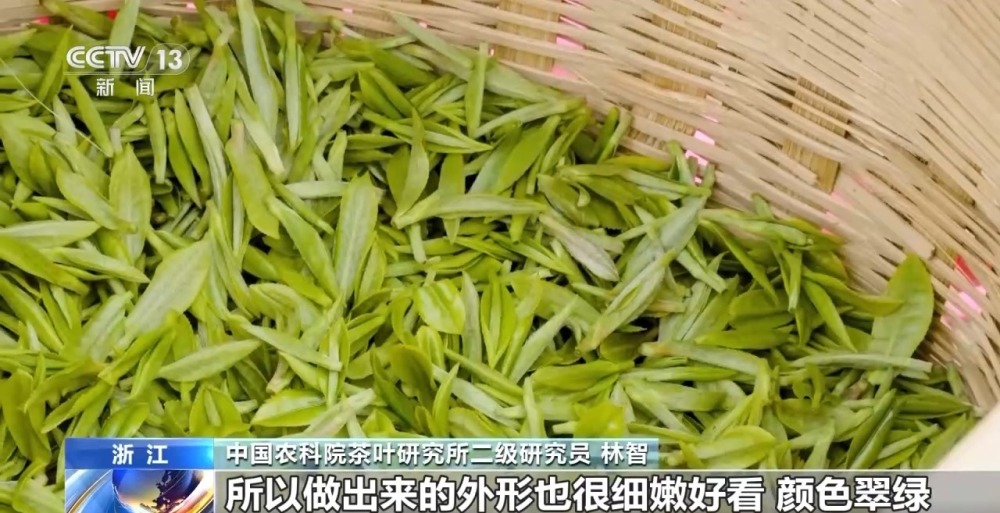 中國農(nóng)科院茶葉研究所二級研究員 林智:所以它有幾個特點,第一個就是好看,為什么說好看呢,因為春天茶的芽葉比較細嫩,所以也比較金貴,做工一般都比較講究,做出來的外形也很細嫩好看,顏色翠綠。