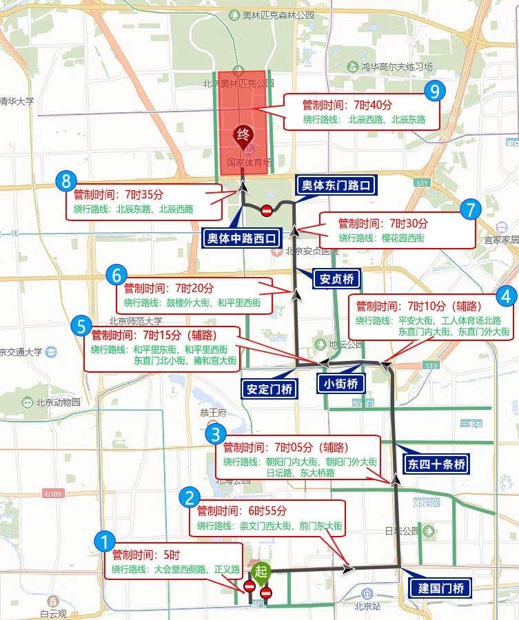2024北京國際長跑節(jié)北京半程馬拉松比賽將于4月14日(周日)7時舉行。起點設(shè)在天安門廣場,終點設(shè)在奧林匹克公園中心區(qū)慶典廣場。比賽期間,部分道路將采取禁止機(jī)動車和非機(jī)動車通行的交通管理措施。比賽和繞行路線戳圖: