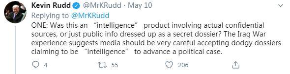 5月10日,陸克文在社交媒體再次連發(fā)五問,質(zhì)疑可能參與此次“甩鍋中國”事件的各方。他的第一問稱,這所謂的15頁“情報”,究竟是源于真實的絕密情報,還是根據(jù)公開信息拼湊而成?他表示,“伊拉克戰(zhàn)爭的教訓(xùn)早已告誡媒體,必須謹慎對待所謂的‘情報’,以防陷入某種政治目的之中?!?/p>