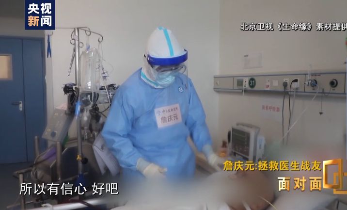 詹慶元:我們是同行,他們在工作中不幸感染新冠病毒,于公于私于情于理我都特別想把他們救過來。就像是我們一起去游泳,他倆掉在河里快淹死了,而我會游泳,甚至有游泳圈,一定要救他們!