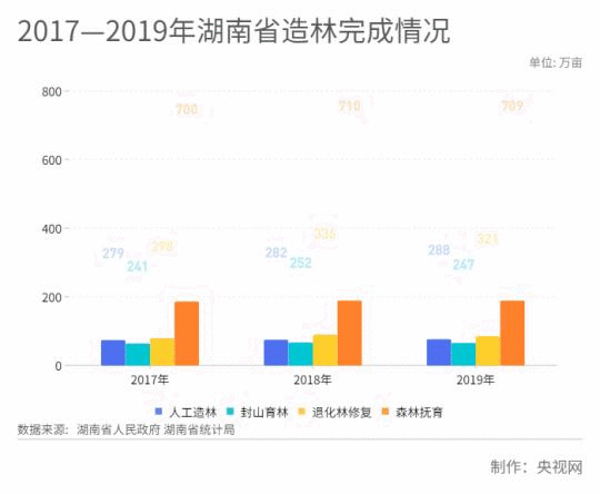 圖5:2017—2019年湖南省造林完成情況