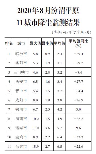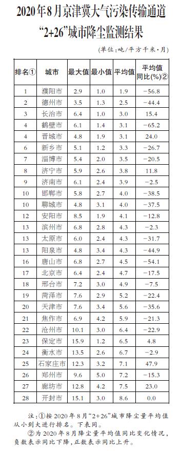 生態(tài)環(huán)境部公布8月京津冀大氣污染傳輸通道 “2+26”城市和汾渭平原11城市降塵監(jiān)測結(jié)果