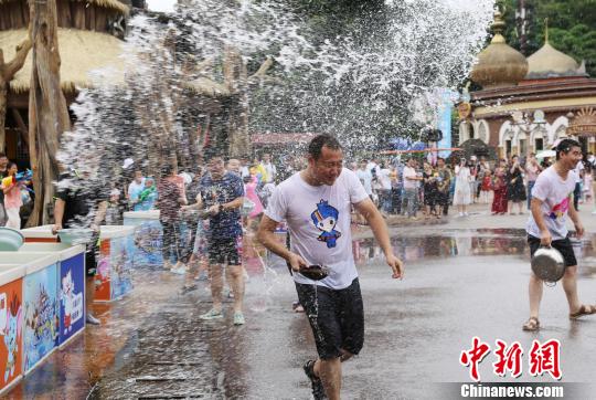 圖為游客們手持水槍、水盆等道具展開(kāi)“激戰(zhàn)”。 鐘欣 攝