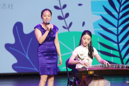 繪本劇也是在閱讀的基礎(chǔ)上延展的一種表演形式,是“閱讀+”的一次探索。本次活動(dòng)的主持人,來自中央廣播電視總臺(tái)的主持人賀超,邀請中央音樂學(xué)院音樂教育學(xué)者管慧丹和青年古箏演奏家侯奕上臺(tái),為大家展示 “閱讀+”的另一種表演形式——古詩詞唱讀。伴隨著悠揚(yáng)的古箏琴聲,全場吟唱,在座的每位觀眾都深深地感受到中國傳統(tǒng)文化的魅力。