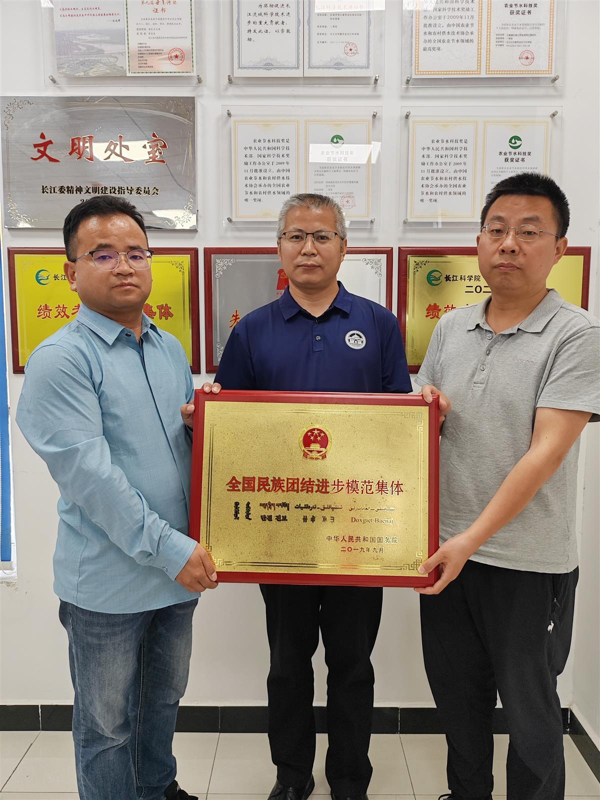2019年9月27日,全國(guó)民族團(tuán)結(jié)進(jìn)步表彰大會(huì)在北京舉行,長(zhǎng)科院農(nóng)水所榮獲“全國(guó)民族團(tuán)結(jié)進(jìn)步模范集體”稱號(hào)。長(zhǎng)科院農(nóng)水所以過(guò)硬的政治素質(zhì)和在促進(jìn)民族團(tuán)結(jié)、維護(hù)民族穩(wěn)定、推進(jìn)少數(shù)民族地區(qū)經(jīng)濟(jì)發(fā)展所做出的突出成績(jī),成為當(dāng)年全國(guó)水利系統(tǒng)中的唯一一個(gè)獲此殊榮的集體。