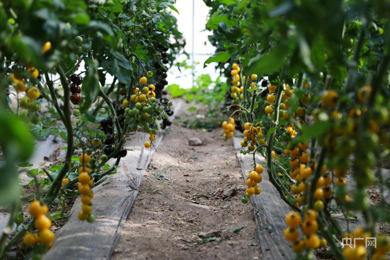 蔬菜大棚里,小西紅柿掛滿枝頭(央廣網記者 唐磊 攝)