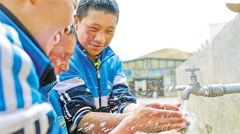 謝通門縣縣城自來(lái)水管網(wǎng)升級(jí)改造后,學(xué)生用自來(lái)水洗手。