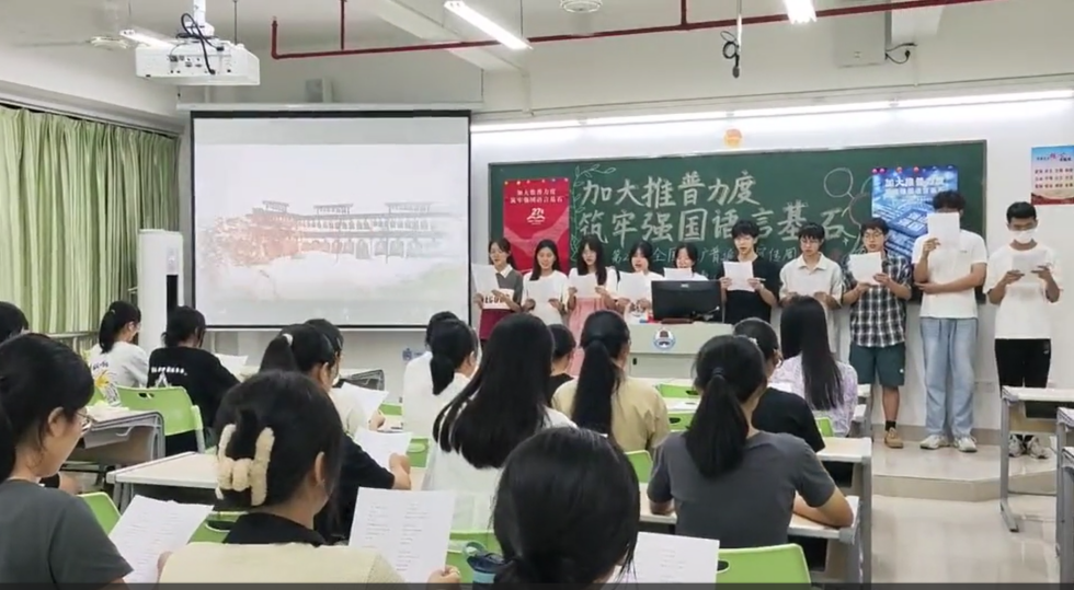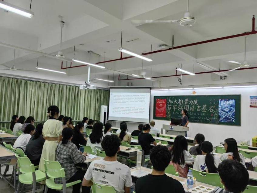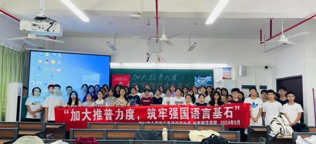 新時(shí)代教育高質(zhì)量發(fā)展的浪潮中,加強(qiáng)國(guó)家通用語(yǔ)言文字教育是提升國(guó)民素質(zhì)、促進(jìn)文化認(rèn)同、推動(dòng)社會(huì)進(jìn)步的重要基石。嶺南師范學(xué)院積極響應(yīng)國(guó)家關(guān)于加強(qiáng)國(guó)家通用語(yǔ)言文字推廣普及的號(hào)召,圍繞“加大推普力度,筑牢強(qiáng)國(guó)語(yǔ)言基石”第27屆全國(guó)推普周主題,依托學(xué)?!督處熣Z(yǔ)言》課程組,成功舉辦了一系列豐富多彩、特色鮮明的語(yǔ)言文化活動(dòng),不僅彰顯了學(xué)院在師范教育領(lǐng)域的深厚底蘊(yùn)與創(chuàng)新活力,更為國(guó)家語(yǔ)言文字建設(shè)和教育強(qiáng)國(guó)戰(zhàn)略貢獻(xiàn)了重要力量。