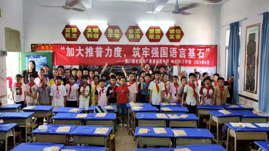 教育強(qiáng)國(guó)戰(zhàn)略背景下,為培養(yǎng)未來教育領(lǐng)軍人才、助力鄉(xiāng)村振興與邊疆教育發(fā)展,嶺南師范學(xué)院《教師語(yǔ)言》課程組十分重視師范生職業(yè)技能教育實(shí)踐。9月13日—9月18日,通過組織師范實(shí)習(xí)生、援藏支教實(shí)習(xí)生及扎根鄉(xiāng)村教育的畢業(yè)生積極參與各類推普活動(dòng),促進(jìn)了國(guó)家通用語(yǔ)言文字的廣泛普及,深刻體現(xiàn)了教育公平與文化傳承的時(shí)代價(jià)值。