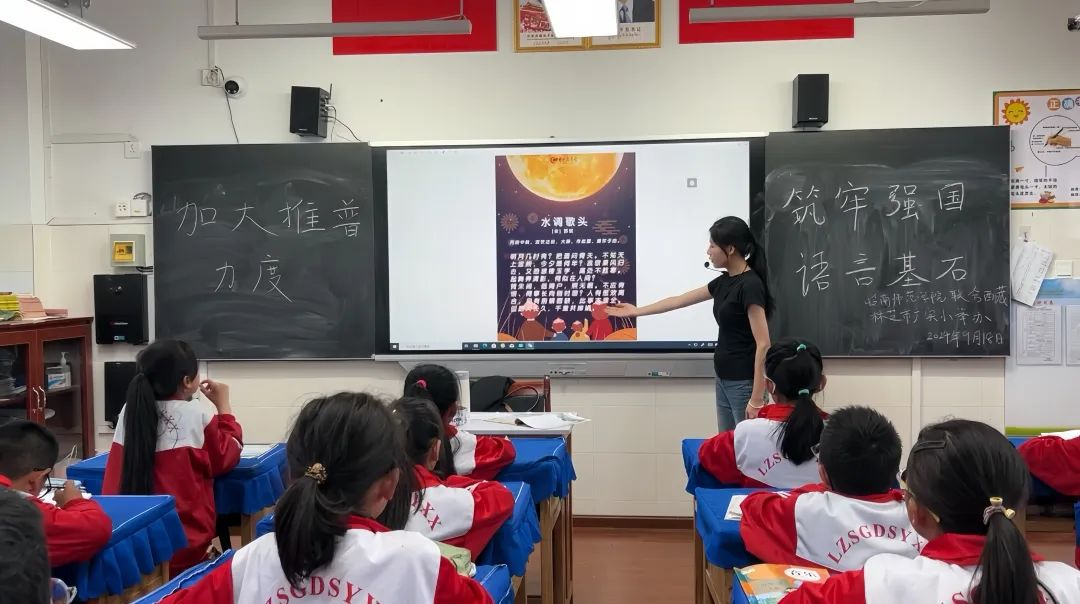 21級(jí)援藏實(shí)習(xí)生張嘉怡在林芝市實(shí)驗(yàn)小學(xué)帶領(lǐng)學(xué)生進(jìn)行古詩(shī)詞誦讀活動(dòng),促進(jìn)了藏區(qū)學(xué)生普通話水平的提升,通過《水調(diào)歌頭·明月幾時(shí)有》的師生共同誦讀,搭建起漢藏文化交流的橋梁,增進(jìn)了民族團(tuán)結(jié)與理解。