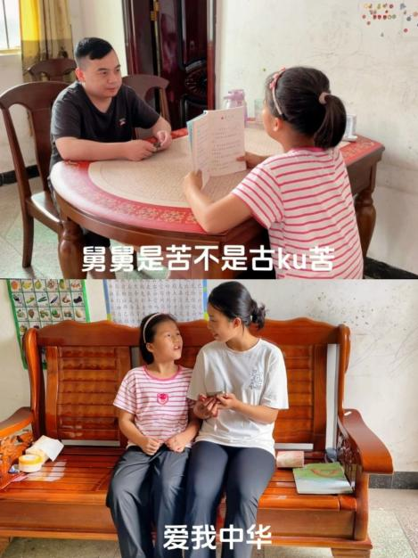 20級(jí)畢業(yè)生龍?jiān)刺煸谇暹h(yuǎn)市連州市龍坪鎮(zhèn)中心小學(xué)進(jìn)行推普創(chuàng)新實(shí)踐,指導(dǎo)學(xué)生借助手勢(shì)舞誦讀《古朗月行》,并將推普工作與家庭教育緊密結(jié)合,策劃與指導(dǎo)“普通話進(jìn)家庭”活動(dòng)。小朋友們化身為普通話小老師,糾正家長(zhǎng)的發(fā)音,與家長(zhǎng)共同學(xué)習(xí)、共同進(jìn)步,提高了家長(zhǎng)們的語(yǔ)言規(guī)范意識(shí);親子同唱《愛我中華》經(jīng)典歌曲,讓推普成為家庭文化的一部分,家庭成員之間的情感得以加深,更在孩子們心中種下了愛國(guó)愛家的種子。