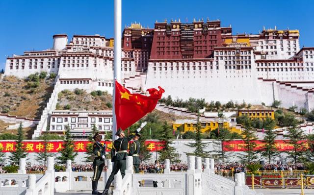 10月1日,拉薩市布達拉宮廣場舉行升國旗儀式。 新華社記者 丁增尼達 攝
