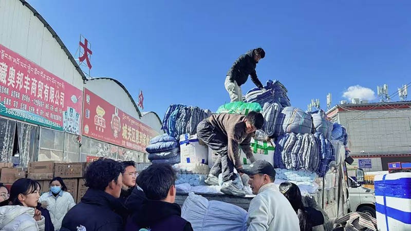 立馬行動(dòng)起來(lái)!他們自籌資金,陳軍亮還聯(lián)系到一些戰(zhàn)友,共同集資采購(gòu)救災(zāi)物品。作為公益機(jī)構(gòu)負(fù)責(zé)人,王順利和她的小伙伴,第一時(shí)間買(mǎi)了從西安轉(zhuǎn)機(jī)飛往拉薩的機(jī)票,并在路上聯(lián)絡(luò)西藏的伙伴,采購(gòu)物資足足裝了3卡車(chē),共30多噸,價(jià)值超過(guò)40萬(wàn)元,緊急運(yùn)輸發(fā)往定日。