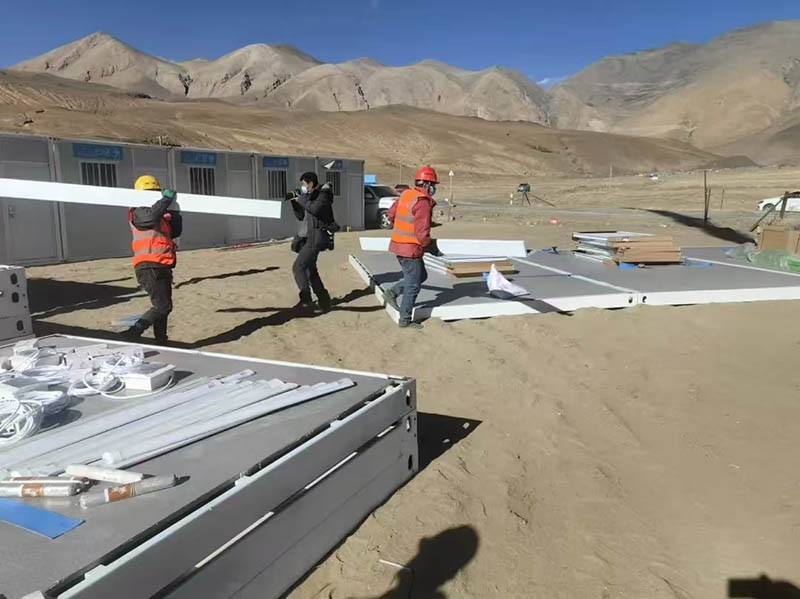 據(jù)介紹,災(zāi)區(qū)海拔高達(dá)4000多米,氣溫只有-13℃,所以參與搭建的工人,必須是之前有過(guò)高原作業(yè)經(jīng)驗(yàn)的?!凹b箱房是緊缺物資,我們?cè)琰c(diǎn)到,就能讓更多人得到幫助?!碑?dāng)?shù)刎?fù)責(zé)人說(shuō)。