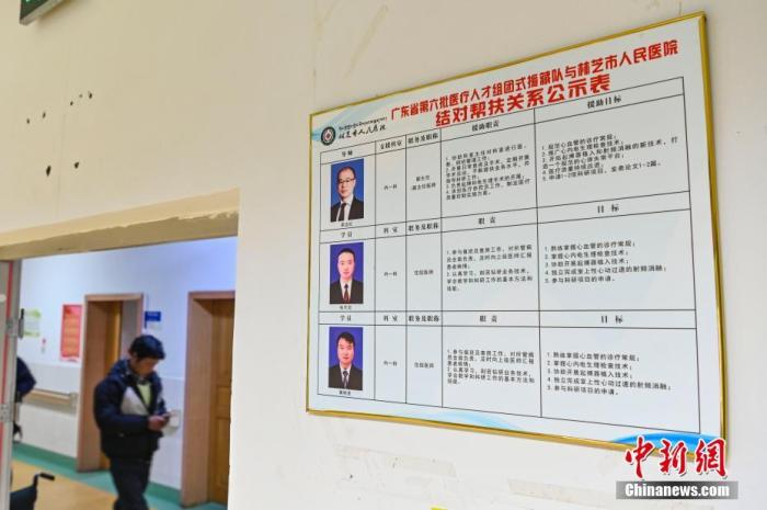 圖為2020年12月21日,西藏林芝市人民醫(yī)院內(nèi)的墻面上張貼著“廣東省第六批醫(yī)療人才組團援藏隊與林芝市人民醫(yī)院結(jié)對幫扶關(guān)系公示表”。 中新社記者 陳驥旻 攝