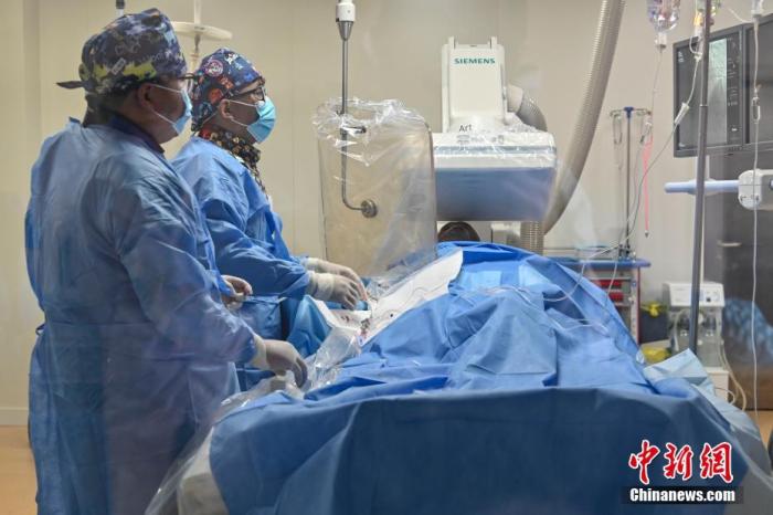 圖為2020年12月22日,西藏林芝市人民醫(yī)院的介入手術(shù)室里,心內(nèi)科醫(yī)生普布扎西(左二)為一名冠心病患者進行冠狀動脈造影及支架植入術(shù)。 中新社記者 陳驥旻 攝
