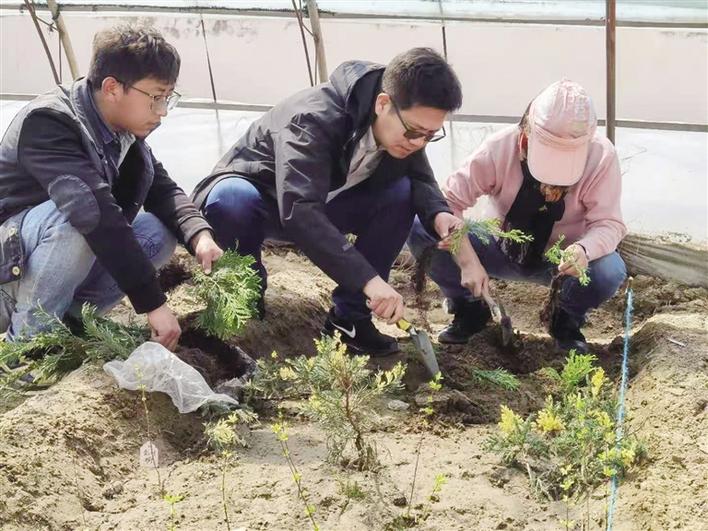 李迎春帶領(lǐng)市林草局專業(yè)技術(shù)人員種植鄉(xiāng)土樹種和彩色植物。圖由拉薩市林草局提供
