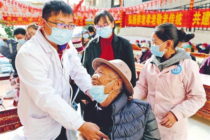 每年的10月是山南市瓊結(jié)縣的“敬老月”,2020年10月30日,縣衛(wèi)生系統(tǒng)黨總支組織縣人民醫(yī)院、藏醫(yī)院、疾控中心、醫(yī)保局等醫(yī)務(wù)工作者,在縣特困人員集中供養(yǎng)中心開展了以“弘揚(yáng)養(yǎng)老孝老敬老傳統(tǒng)、共建共享老年友好社會(huì)”為主題的健康服務(wù)活動(dòng)。讓老人們切切實(shí)實(shí)感受到黨和政府的關(guān)懷和溫暖,感受到全社會(huì)的關(guān)愛和重視。 圖為縣人民醫(yī)院援藏醫(yī)生正在為老人檢查身體(2020年10月30日攝)。