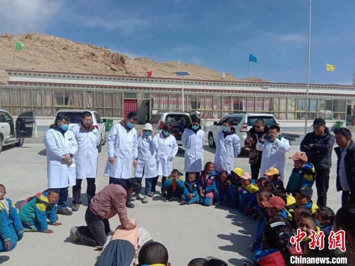 醫(yī)療隊為波絨鄉(xiāng)中心小學師生進行心肺復蘇現(xiàn)場培訓?!熍_援藏醫(yī)療隊供圖