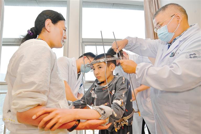 教育“走出去”取得成功的同時(shí),醫(yī)療幫扶也同樣創(chuàng)造了奇跡。2020年8月,經(jīng)援藏工作組對(duì)接協(xié)調(diào),蕭山區(qū)中醫(yī)院在色尼區(qū)啟動(dòng)“抬頭挺胸·重塑脊梁”圓夢(mèng)行動(dòng)。曾因脊柱嚴(yán)重畸形、身高僅有135厘米的藏族小伙尼瑪扎西來(lái)杭免費(fèi)治療半年后,奇跡般地長(zhǎng)高了22.3厘米。截至目前,已有25位像尼瑪扎西這樣的患者得到救治,挺起了人生的脊梁。